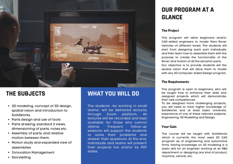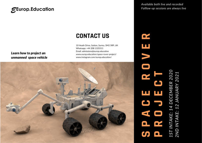 Are you ready to project your first Mars rover vehicle supported by industry expert? Would you like a flexible program where webinars are available both live and recorded? Would you like enhancing your CV and advancing your career with a unique experience of learning and doing? If you are a space industry enthusiast and wish to project a vehicle in a friendly supporting environment, don't miss this unique opportunity.